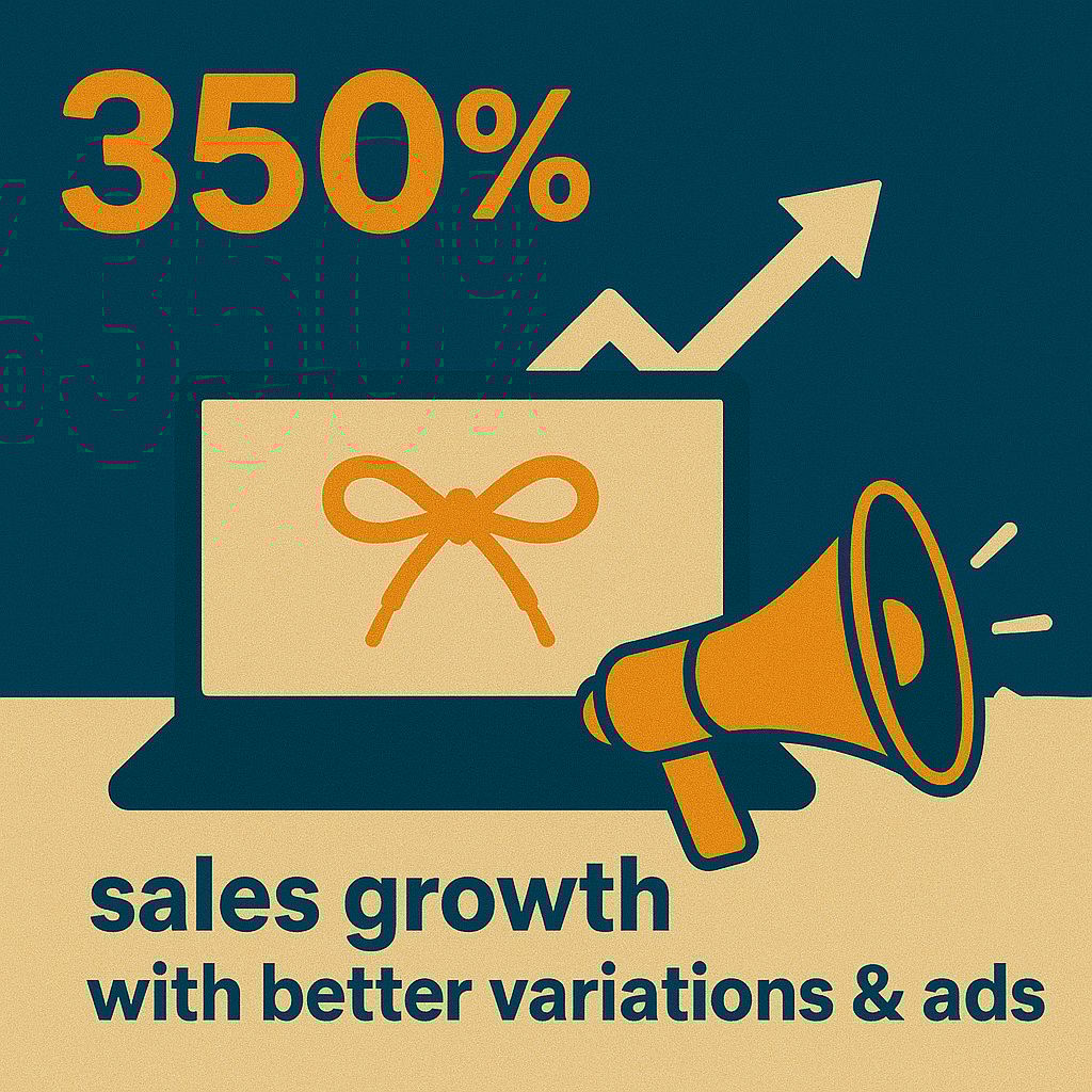 For one shoelace company, the fix was simple in theory but complex in execution: clean up their listings, organize variations, and amplify visibility with smart ads. The result? 350% year-over-year sales growth.